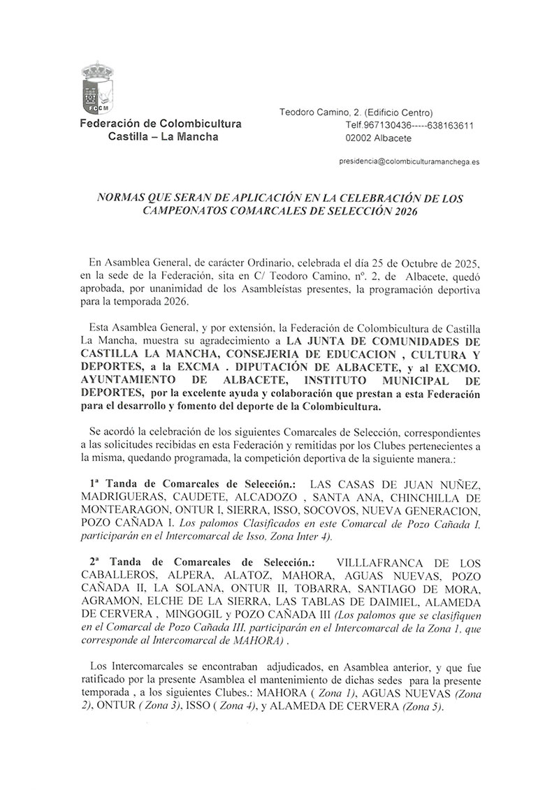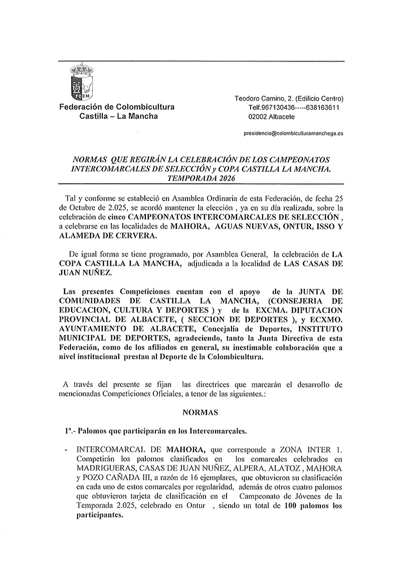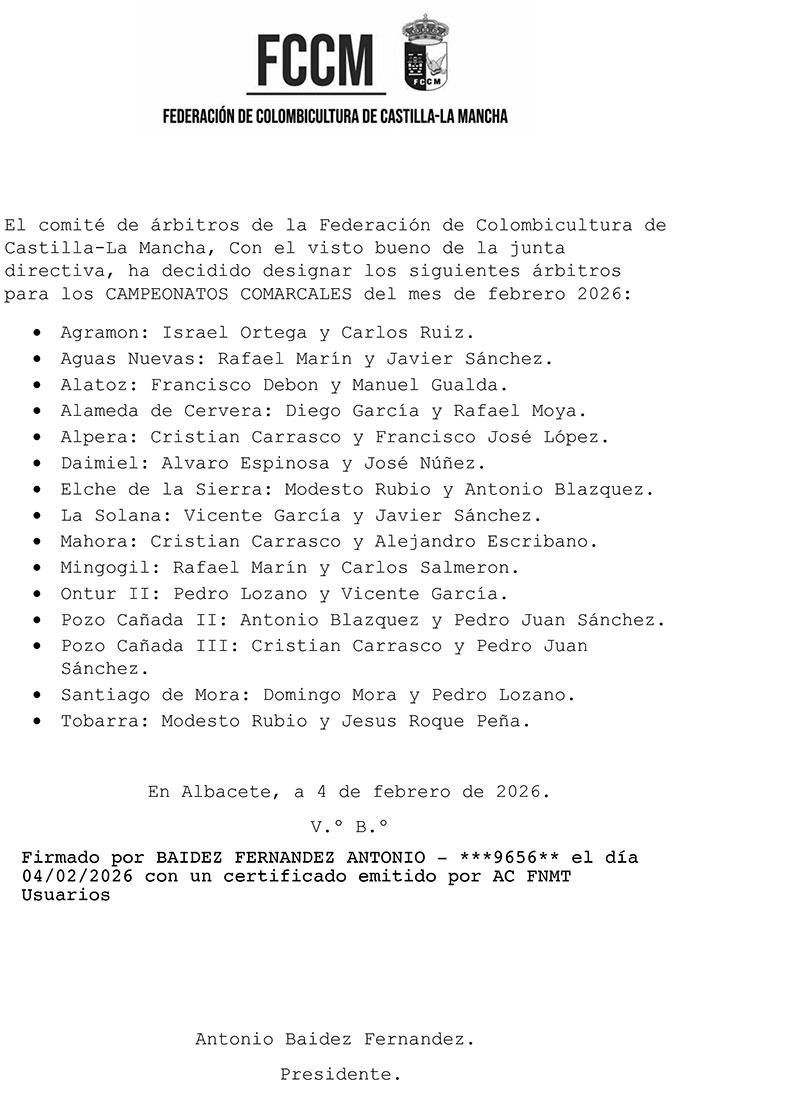 Federación de Colombicultura de Castilla-La Mancha es una web cuyos fines son la práctica, promoción y regulación del deporte federado de la colombicultura, cuyo ámbito de actuación es Castilla-La Mancha y que cuenta con miles de licencias repartidas por toda la Región.